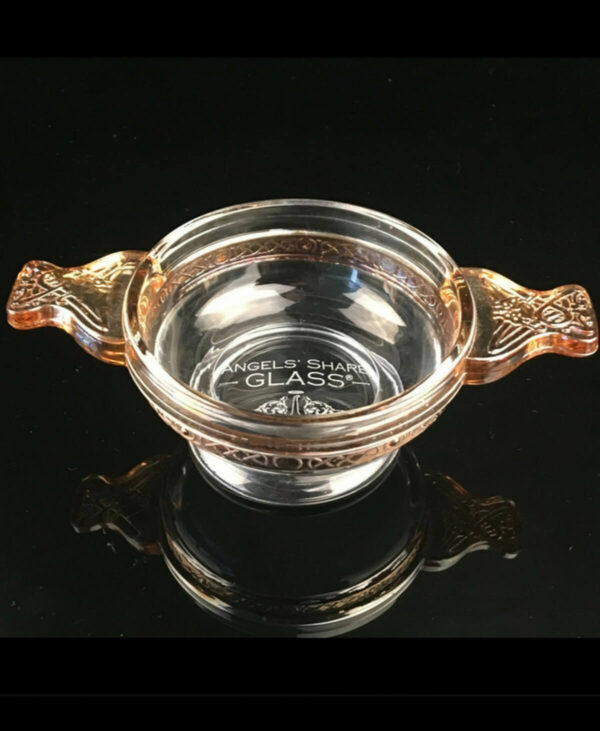 The tradition of The quaich Scottish Gaelic “cuach” meaning drinking cup or “cup o friendship” dates from the Scottish Highlands from the 17th and 18th centuries. A Quaich was traditionally fashioned from oak and has been known to have been turned using whisky barrel staves. They then became more commonly found popular in silver. Angels Share Glassware have taken a moulded glass quaich and enhanced it with the attributes of whisky and their own brand stamp. The perfect sup at a Burns Supper or as a gift to seal a long friendship or to mark a marriage. . For adults of legal drinking age. Please drink responsibly.