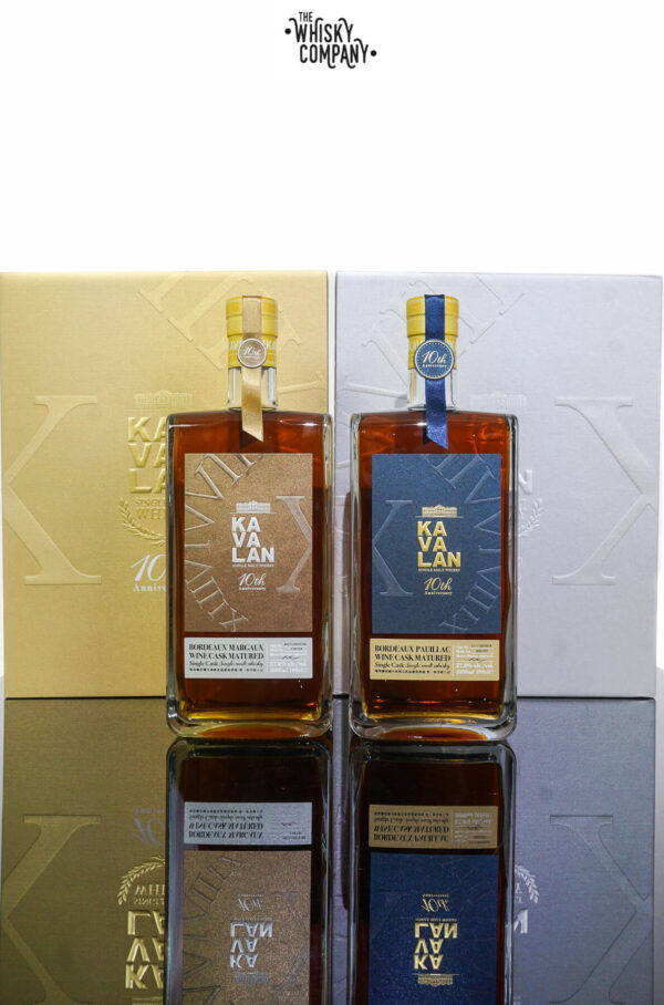 Kavalan 10th Anniversary Special Edition Single Malt Whisky (1000ml x 2) Volume: 1000ml x 2 ABV: 57.8% Age: No Age Statement Country: Taiwan Aged in casks that previously held Bordeaux wines from the Margaux and Pauillac regions of France Kavalan have released these single malt whiskies top their tenth year in production. The limited edition Bordeaux Pauillac whisky is said to “burst with sumptuous flavours of ripened fruits of the forest, delicious toffee apple, and gentle cumin, coriander and pepper spices”. Kavalan Bordeaux Margaux, meanwhile, has notes of “warm caramel and buttery fudge, thick dark molasses and the soft sweetness of creamy vanilla”. The price includes two 1000ml bottles of Kavalan’s finest whiskies matured in Bordeaux Margaux and Bordeaux Pauillac barrels, both bottled at 57.8% abv Only 3,000 bottles of each whisky have been produced for worldwide distribution. “We were intrigued by the distinctive flavours that might be possible from this unique marriage between Kavalan, where we pursue perfection daily, and these prestigious châteaux, known for their centuries of excellence.” said Master blender Ian Chang. “At Kavalan we have always sought excellence as a foundation for our whisky as we look into the future and work toward our goal of becoming, what in Taiwan we call a ‘century-old distillery’, which is a brand capable of thriving even after hundreds of years.” said Kavalan CEO YT Lee. Our Tasting Notes Kavalan Bordeaux Margaux Wine Cask Matured Single Cask Single Malt Colour: Dark amber Nose: Freshly stewed tropical fruits and brown sugar, aromas of warming spice and delicious dessert wine. Palate: Buttery toffee full of currents and raisins. Stewed plums and roasted macadamias. Finish: Just superb, long and delicious with sweet fruits and pastry notes. Kavalan Bordeaux Pauillac Wine Cask Matured Single Cask Single Malt Colour: Rich Mahogany Nose: Blackcurrants, strawberries, blueberries. There’s a wonderful sweet but dry combination influenced by the Pauillac wine. Freshly cut apples, salami, black pepper and coriander seeds. Palate: Creamy and plenty of really elegantly balanced vanilla. Tropical fruits combined with toffee and coriander seeds. Finish: The red berries and the black pepper combine. A tropical fruit bomb with a long but drying finish.. For adults of legal drinking age. Please drink responsibly.